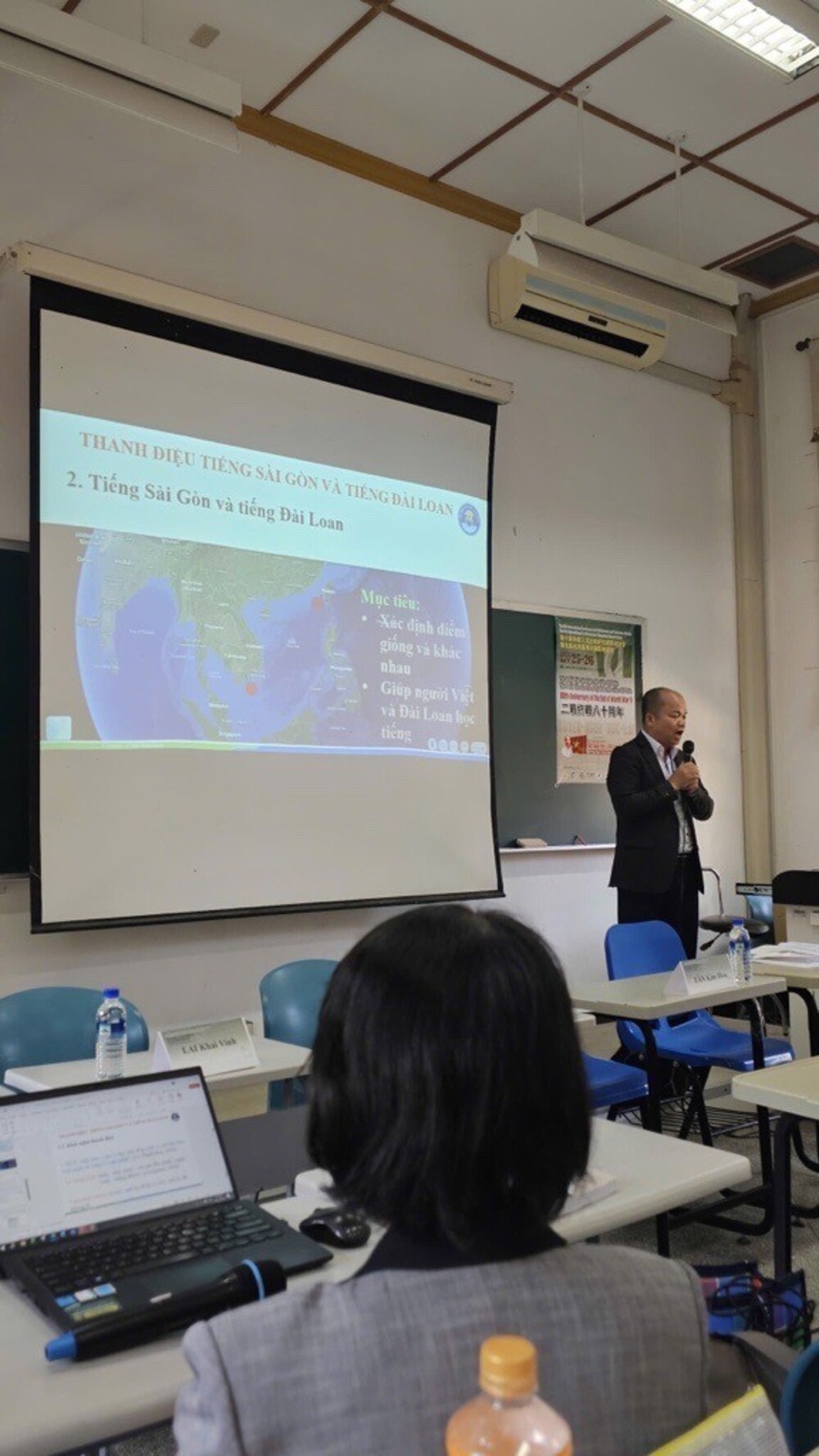 Đại diện Khoa Ngoại ngữ, TS. Lai Khai Vinh và TS. Lê Thanh Hòa đã tham gia báo cáo tham luận khoa học với đề tài “Phân tích đối chiếu hệ thống thanh điệu tiếng Sài Gòn và tiếng Đài Loan”, nhận được sự quan tâm và phản hồi tích cực từ các nhà nghiên cứu quốc tế. Bài báo cáo không chỉ góp phần làm rõ đặc trưng ngữ âm của hai ngôn ngữ, mà còn thể hiện năng lực nghiên cứu và tinh thần học thuật nghiêm túc của giảng viên Trường Đại học Văn Hiến. Bên cạnh việc trình bày tham luận, hai giảng viên cũng có cơ hội trao đổi học thuật và hợp tác chuyên môn với các nhà nghiên cứu đến từ nhiều trường đại học trong khu vực, đặc biệt là trong lĩnh vực ngôn ngữ học so sánh và giảng dạy.