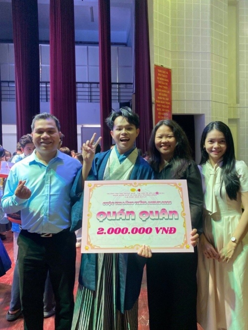Sự tham gia của sinh viên Phạm Nhật Trung là minh chứng rõ nét cho hiệu quả của quá trình đào tạo gắn liền với thực tiễn mà Khoa Ngoại ngữ đang hướng đến. Thông qua những trải nghiệm tại cuộc thi, sinh viên không chỉ nâng cao trình độ chuyên môn mà còn tích lũy thêm kỹ năng mềm, bản lĩnh sân khấu và khả năng thích ứng trong môi trường đa dạng văn hóa - những yếu tố quan trọng trong hành trang nghề nghiệp tương lai.
