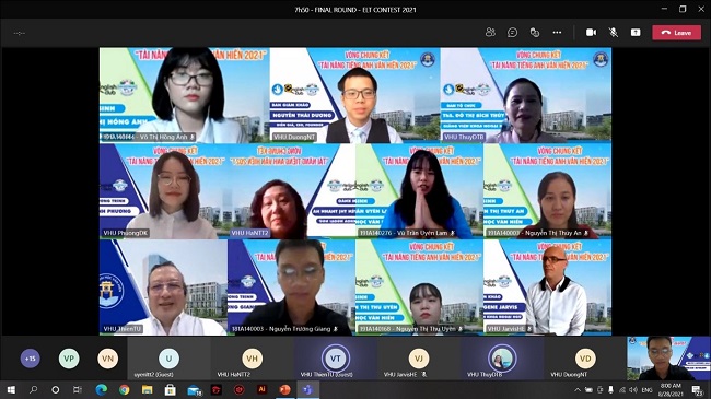 Qua 3 tháng với những phần thi cực kỳ kịch tính, gay cấn và nhiều màu sắc của các thí sinh ở vòng bảng, vòng chung kết cuộc thi ‘Tìm kiếm tài năng tiếng Anh Văn Hiến – VanHien ELTs 2021’ đã được tổ chức trực tuyến vào lúc 8h00’ thứ Bảy, 28/08/2021 (Trên nền tảng Microsoft Teams để đảm bảo phòng chống dịch Covid-19, nhưng sức nóng của buổi thi vẫn không vì thế mà giảm đi).