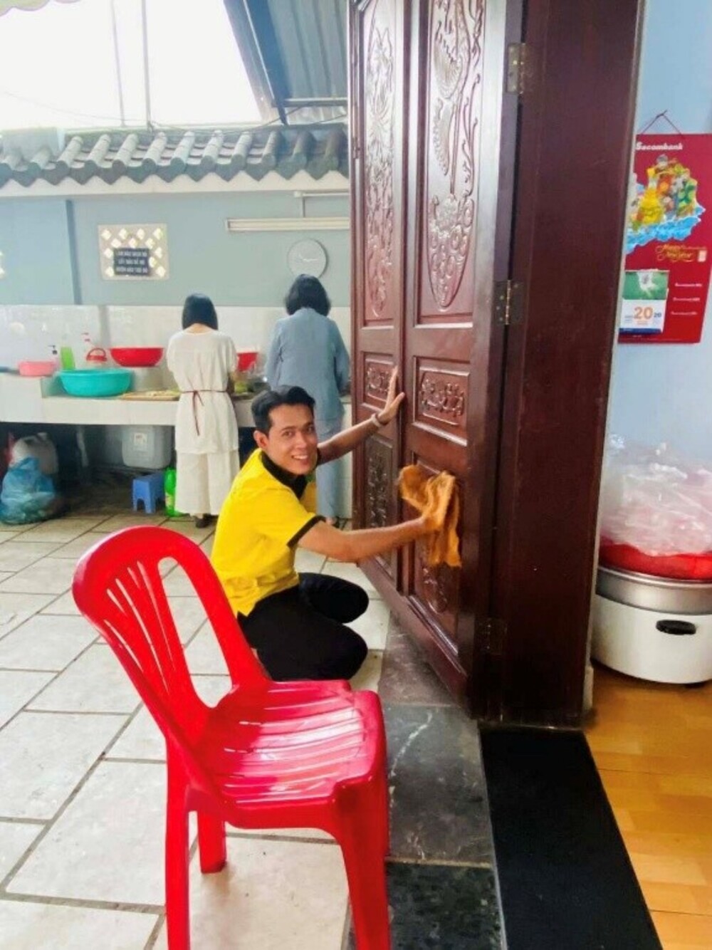 Trong suốt một ngày hoạt động, các bạn sinh viên không chỉ hỗ trợ lau chùi, quét dọn khu vực sinh hoạt chung của mái ấm và khuôn viên chùa, mà còn dành thời gian trò chuyện, lắng nghe những câu chuyện đời, những tâm sự giản dị nhưng đầy xúc động từ các cụ. Những nụ cười hiền hậu, những ánh mắt ấm áp và lời cảm ơn chân thành đã để lại nhiều cảm xúc khó quên trong lòng mỗi sinh viên tham gia chương trình.