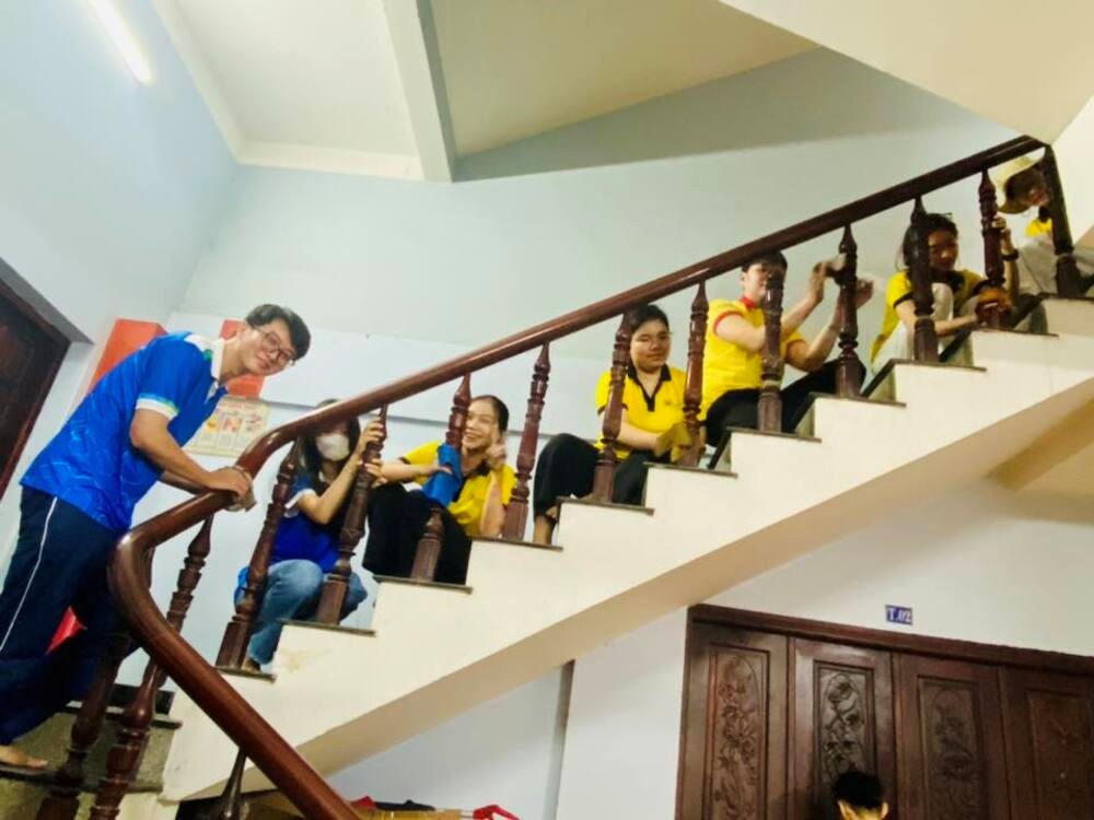 Các bạn sinh viên chung tay lau dọn khu vực cầu thang