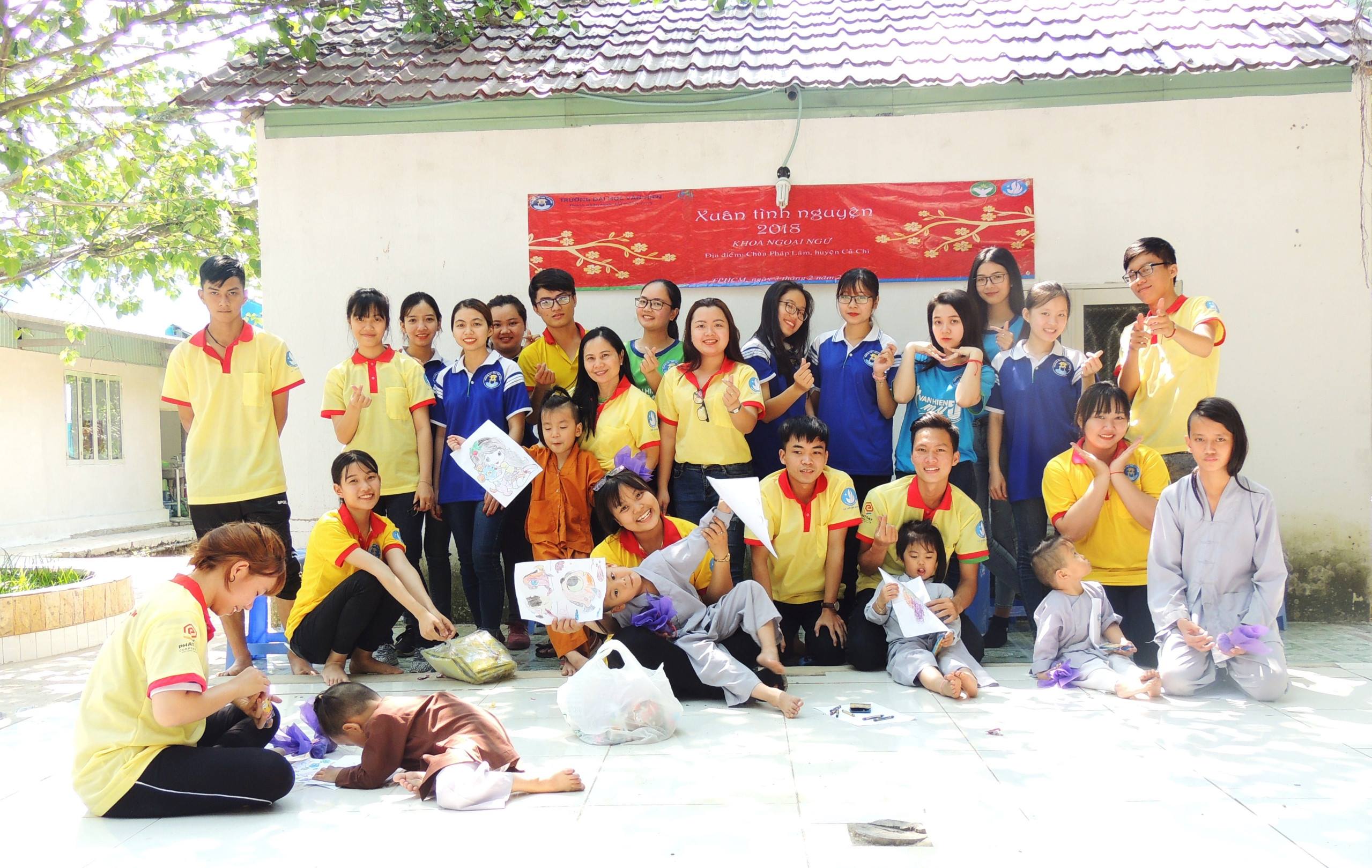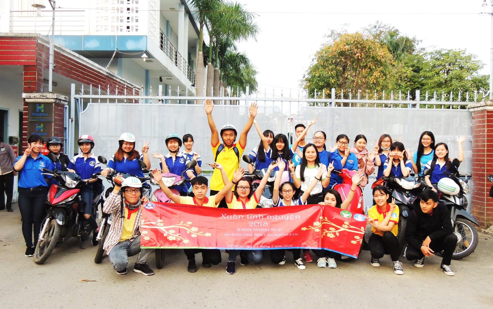 Mặc dù mùa xuân đã gần kề, mọi người đang bận rộn với việc chuẩn bị về quê sum vầy và đón tết thì các bạn sinh viên Khoa Ngoại ngữ - VHU vẫn dành thời gian và một phần chi tiêu để tham gia chương trình Xuân Tình Nguyện 2018. Với mục tiêu trao yêu thương, đem lại niềm vui và san sẻ với những mãnh đời kém may mắn, 2 hoạt động xuyên suốt chương trình đươc thống nhất là phát cơm + sữa cho những người vô gia cư ở các tuyến đường trong thành phố Hồ Chí Minh và dành 1 ngày đến với chùa Pháp Lâm, một ngôi chùa nằm tại xã Tân Phú Trung, Củ Chi mà có lẽ ít ai biết đến lại là nơi cưu mang cho các cô nhi bị bố mẹ bỏ rơi khi vừa cất tiếng khóc chào đời. Sau khi quét dọn xung quanh chùa, các bạn lại quây quần sinh hoạt với các trẻ mồ côi. Nhìn những gương mặt đáng yêu với những đôi mắt tròn xoe ngây thơ của các bé, chúng tôi dường như quên hết những nỗi mệt nhọc. Một ngày ý nghĩa của các bạn sinh viên Khoa Ngoại ngữ đã khép lại nhưng có lẽ những cảm xúc về chuyến đi này sẽ còn lưu mãi trong tâm trí của mỗi thành viên.