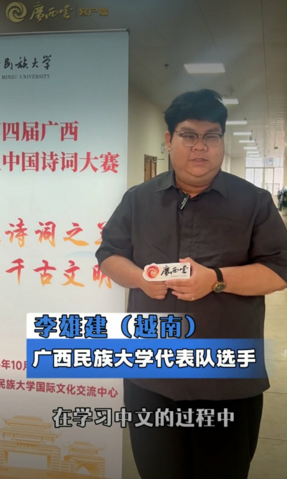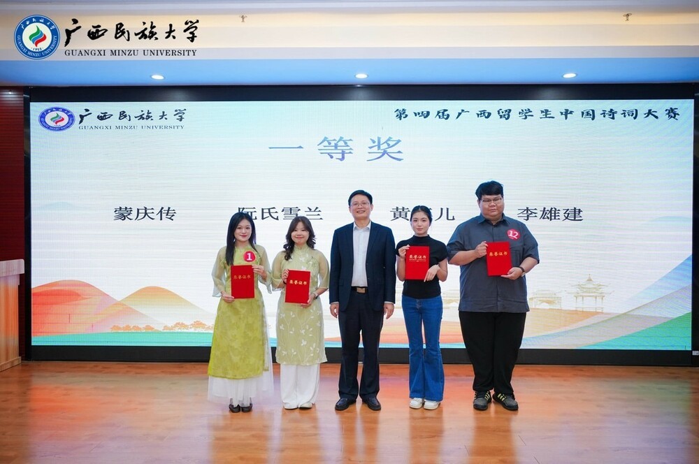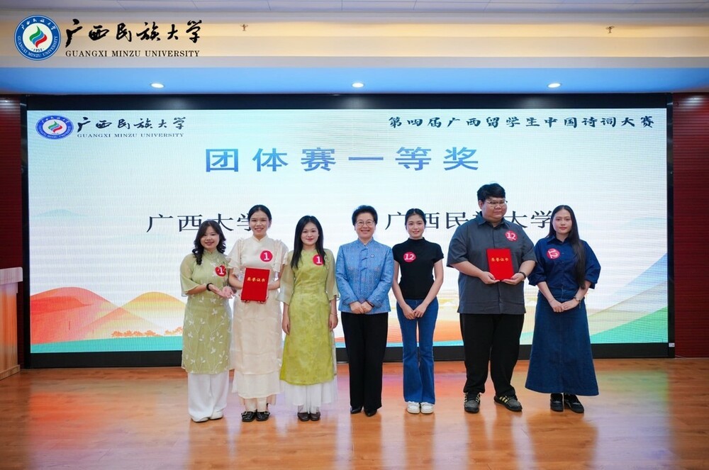 Vào ngày 25/10/2025, Trường Đại học Dân tộc Quảng Tây đã long trọng tổ chức Cuộc thi “Văn thơ cổ Trung Quốc” lần thứ 4 với chủ đề “Trân trọng vẻ đẹp thơ ca, kế thừa văn minh vĩnh cửu”. Cuộc thi là sân chơi học thuật uy tín dành cho sinh viên quốc tế, nhằm tôn vinh giá trị văn hóa truyền thống và khuyến khích tình yêu đối với thơ ca cổ điển. Sự kiện quy tụ hơn 50 thí sinh quốc tế đến từ 14 trường đại học trong tỉnh Quảng Tây, bao gồm sinh viên đến từ nhiều quốc gia như Lào, Campuchia, Singapore, Thái Lan, Việt Nam, Hàn Quốc, các nước châu Phi….Trong không khí sôi nổi nhưng cũng đầy tính học thuật, các thí sinh phải trải qua hai vòng thi: vòng cá nhân và vòng đồng đội. Các phần thi đòi hỏi khả năng ngôn ngữ, hiểu biết văn hóa, cùng năng lực tư duy phản biện và sáng tạo nghệ thuật.